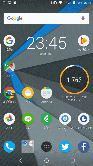また「生産性タブ」はレイヤー的には最前部分に位置するため、ホーム画面だけでなく、何かのアプリを起動している時でも利用することが可能です。