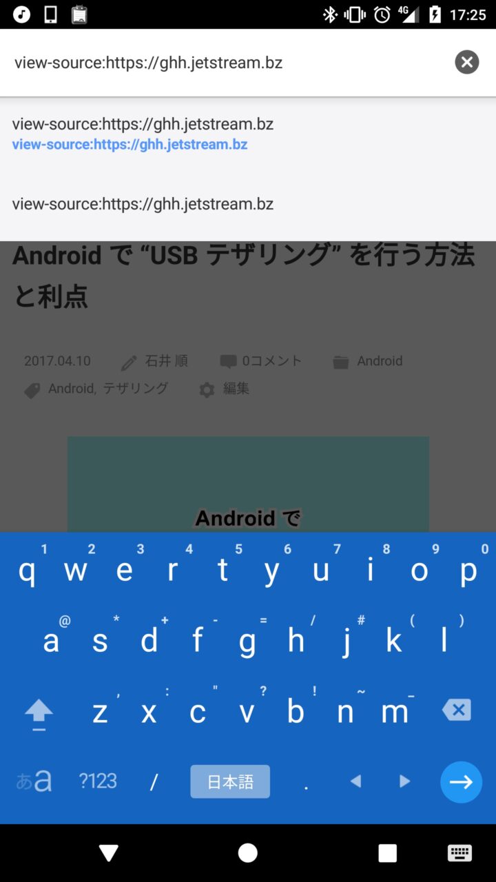 しかしスマートフォン版「Chrome」アプリでも簡単な方法を利用してサイトのソースコードを表示することができます。その方法は、アドレスバーのサイト URL の先頭に “view-source:” をつけて表示するだけです。