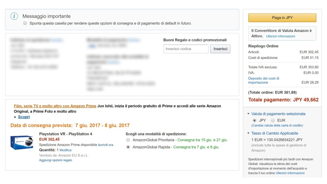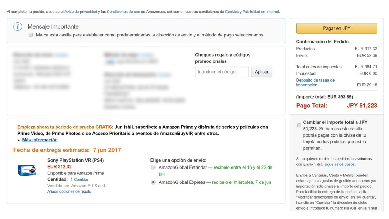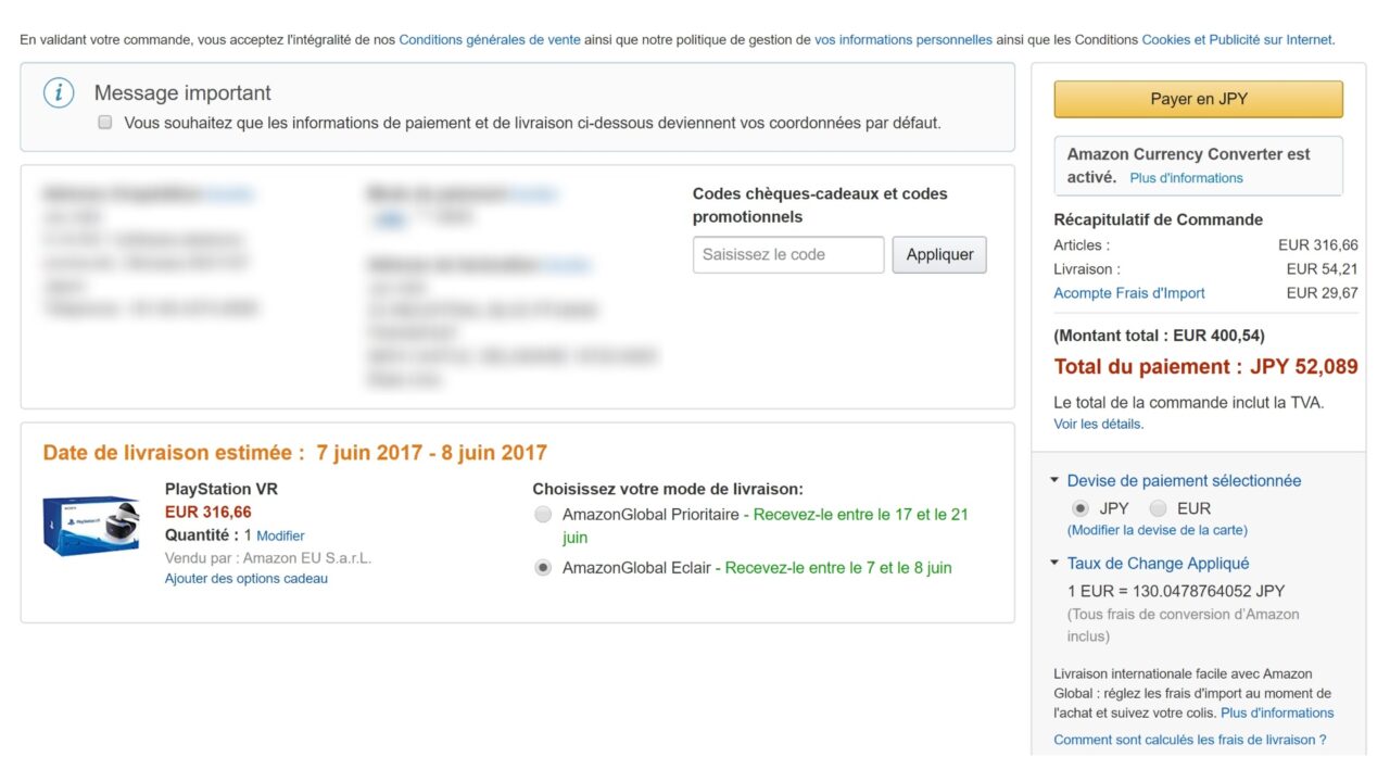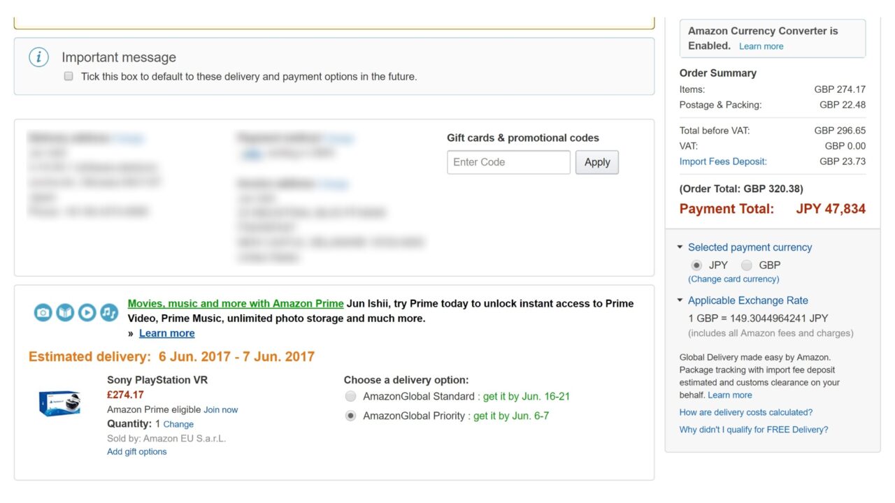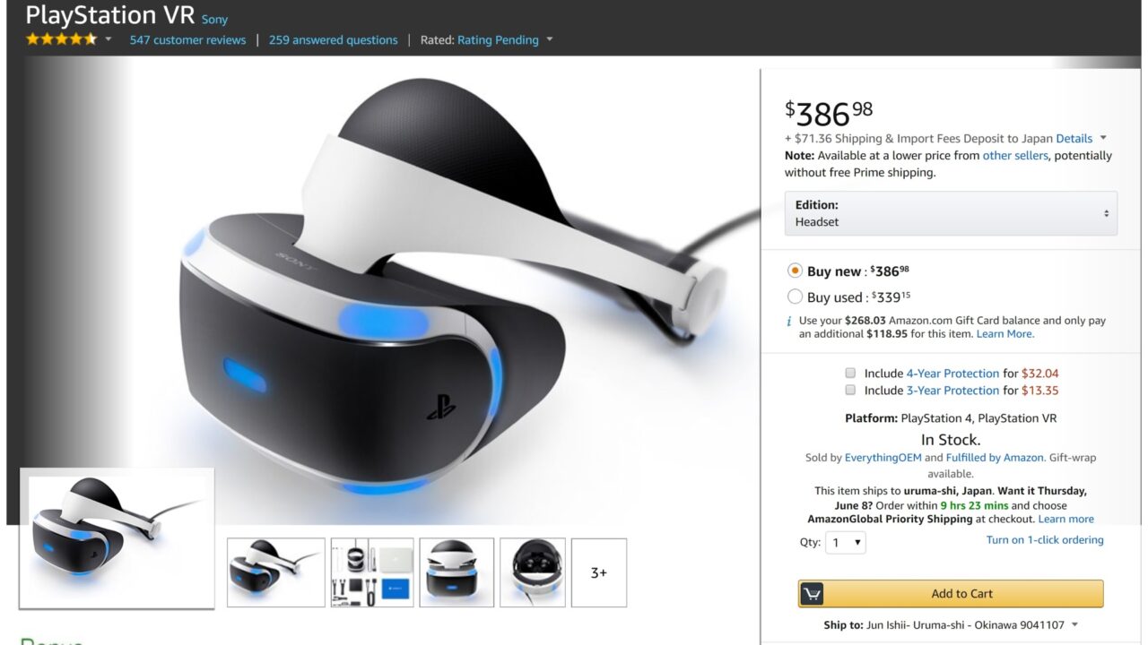 結果、英国の Amazon.co.uk が現時点で一番安価に「PlayStationn VR」を直輸入できるルートということが判明しました。