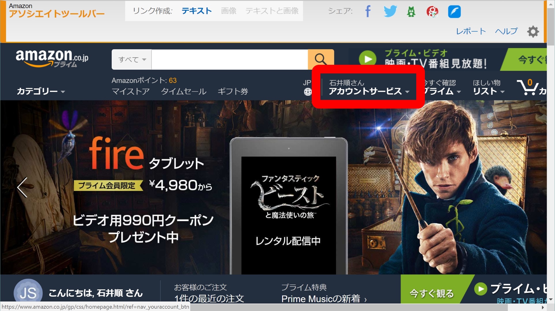 - Amazon プライム年会費