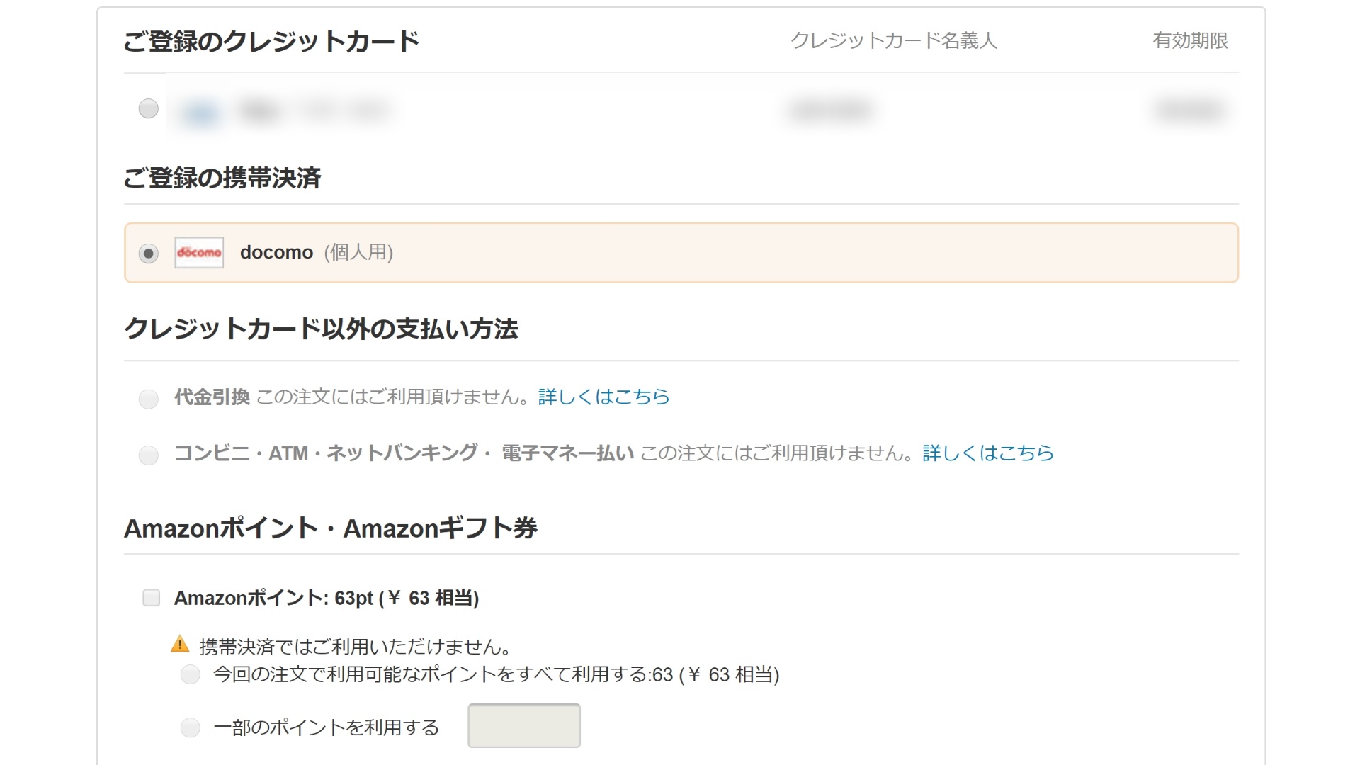 紐づけが完了すると、Amazon でのお買い物時に「ドコモ ケータイ払い」及び「au かんたん決済」が利用できるようになります。