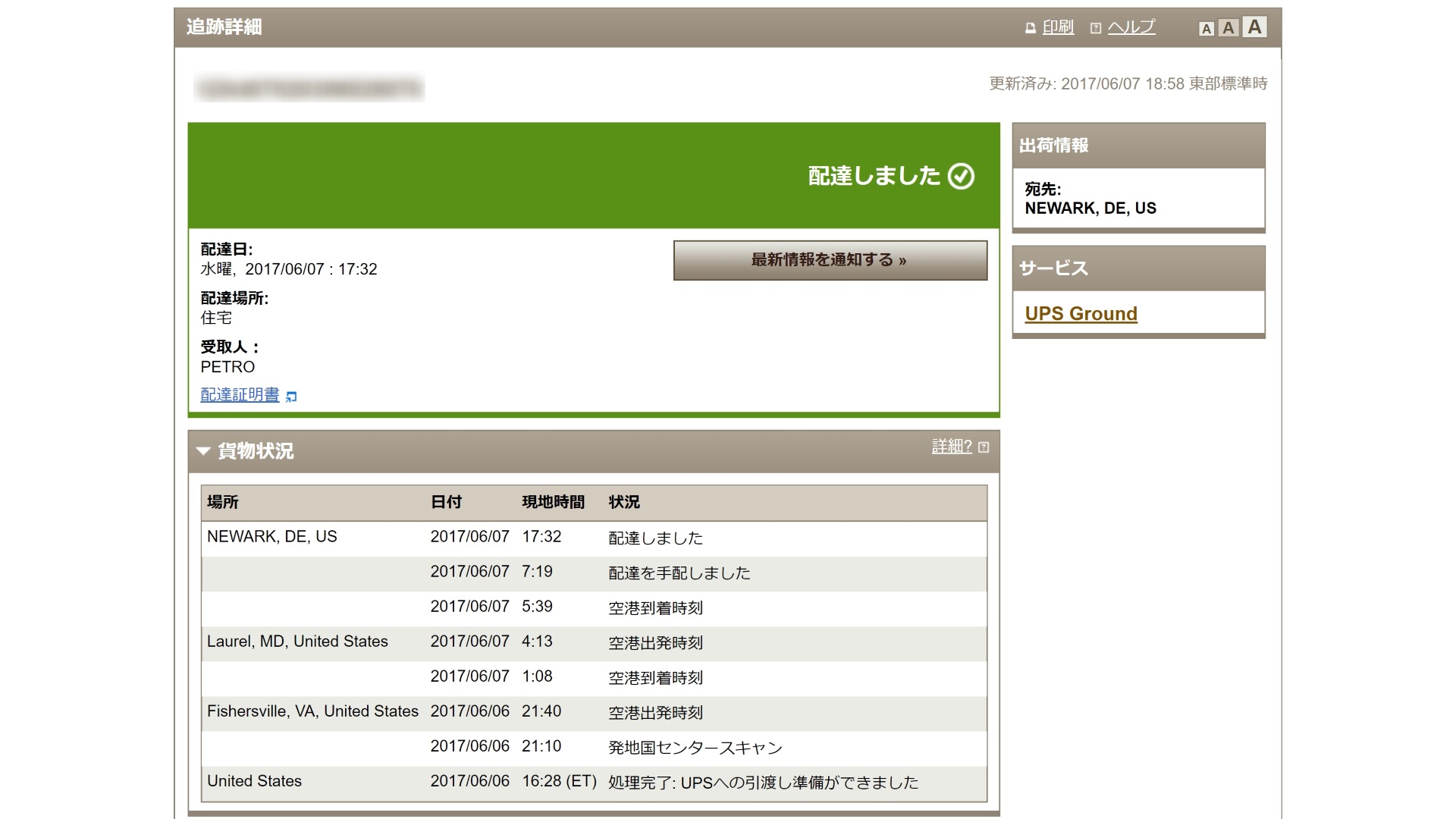 FedExが発送先近くの倉庫に運んでから、USPSに引き継ぐのに数日も要していました。