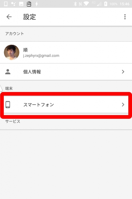 もし「Google アシスタント」が ON になっていない場合はそのまま “設定” をタッチして、“スマートフォン(もしくは機種名)” をタッチし、“Googleアシスタント” のスイッチが ON になっているかどうかを確認してみてください。