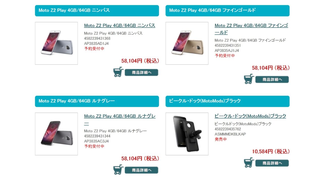 国内版「Moto Z2 Play」の本体価格は 53,800 円(税抜き)です。