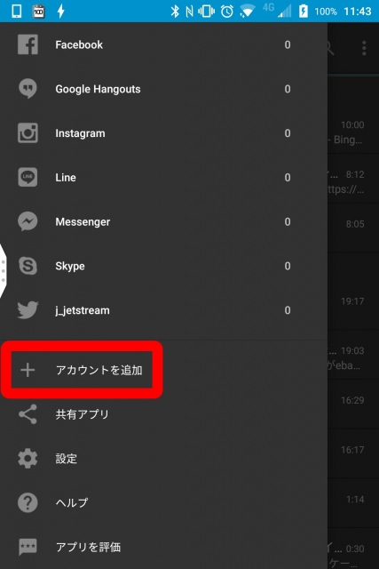 実際の登録は初期設定時に行うこともできますが、初期設定後に行うことももちろんでします。設定するには「BlackBerry Hub」のメニューから “アカウントを追加” から行います。