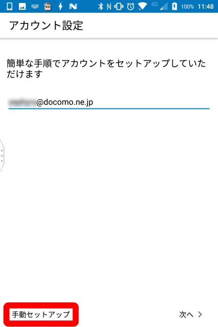 “アカウントを追加” をタッチしたらメールアドレスを入力し、“手動セットアップ” をタッチします。