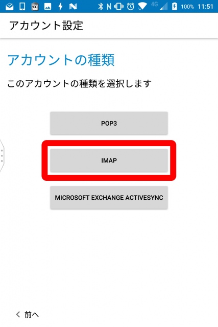 ドコモメールは IMAP 形式なので “IMAP” をタッチします。