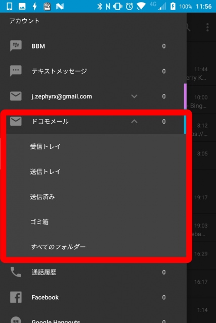 お疲れさまでした。これで「BlackBerry Hub」にドコモメールが登録されました。