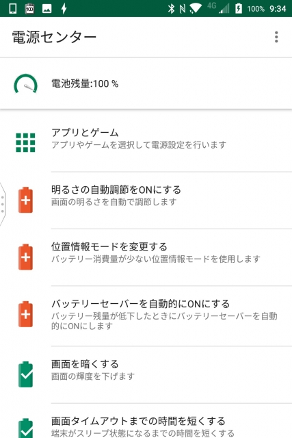 「電源センター」は(恐らく)「KEYone」で初搭載された省電力サポート機能です。