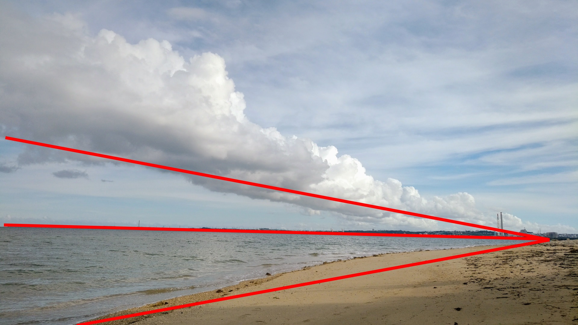 実際はただ帯状の雲が印象的だったのでそれを撮影しただけだたのですが、偶然にも“リーディングライン” が当てはまる写真となったわけです。