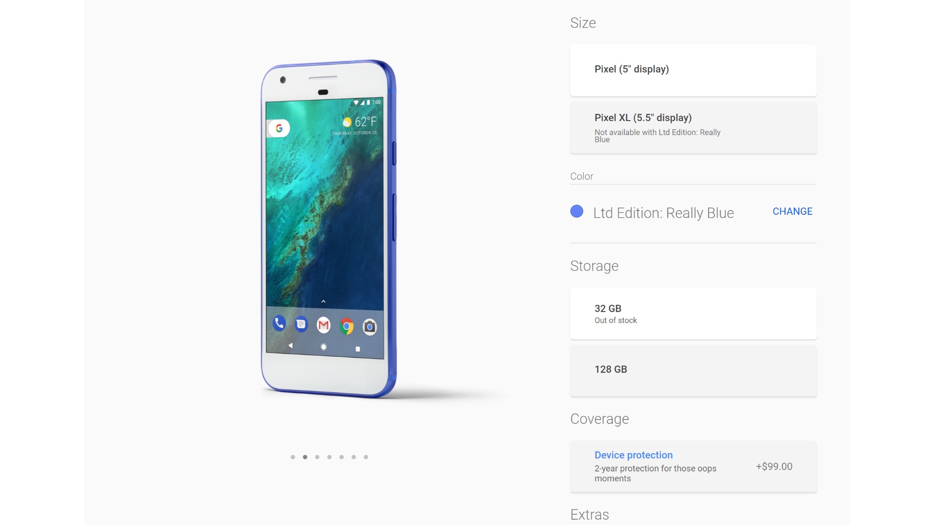 先月上旬に商品ページからラインアップが削除されて公式販売が終了したと思われていたGoogle スマートフォン「Pixel / Pixel XL」の限定カラー“リアリーブルー(Really Blue)” ですが、「Pixel」のみラインアップが復活していました。