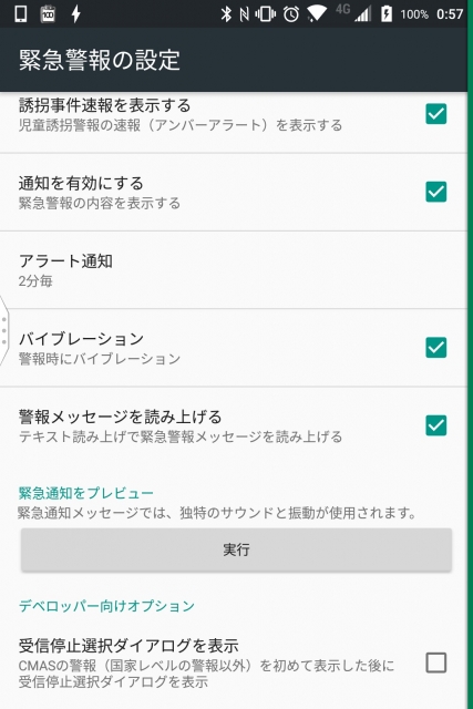 更に見ての通り、「KEYone」では “実行” をタッチすることで緊急情報のプレビューを行うことも可能です。