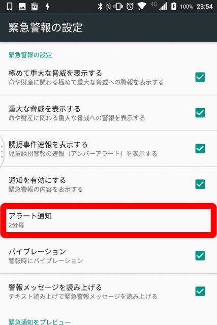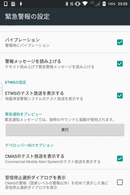 緊急情報設定は基本的に全てチェックを入れておいた方がいいでしょう。チェックを外すメリットはあまりないかと思います。