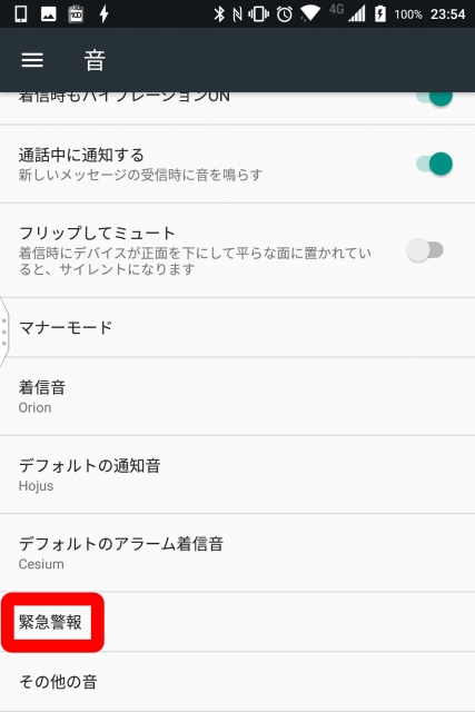 表示される “音” の設定画面を下までスクロールすると “緊急情報” がでてくるのでタッチします。