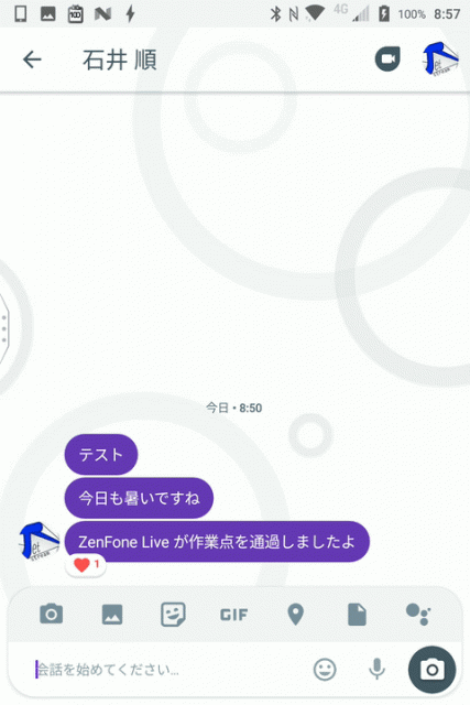 「Google Allo」のリアクションは今のところハートマークを付けられるだけです。バッドマークなどは付けることはできません。
