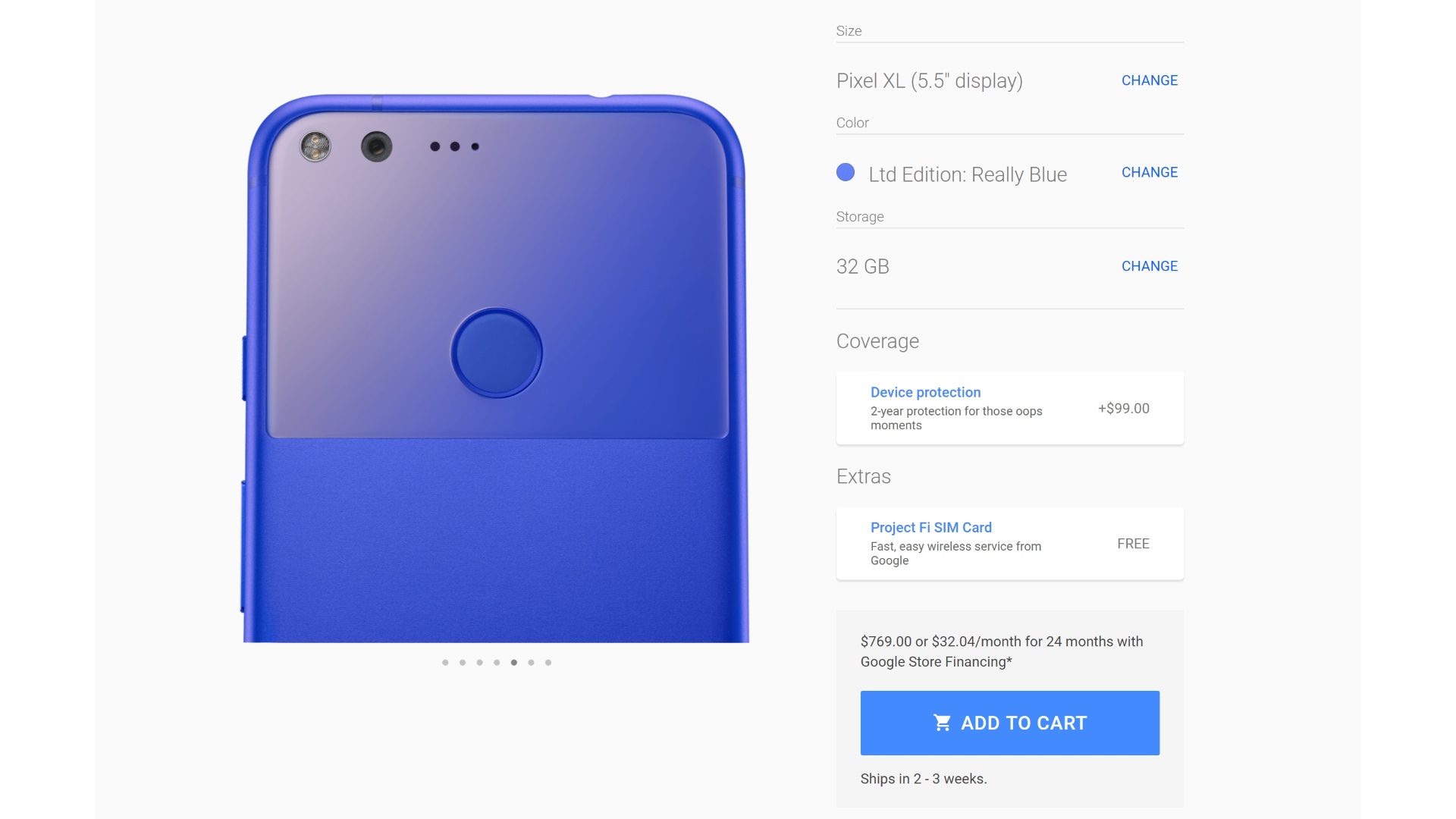 「Pixel / Pixel XL」“リアリーブルー” は当初、米国限定カラーとして既存カラーと共に発売され、その後英国の大手携帯電話販売ショップ Carphone Warehouse でも今年 2 月よりグローバルモデルの同カラーが限定発売されました。