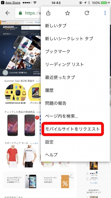 “モバイルサイトをリクエスト”
