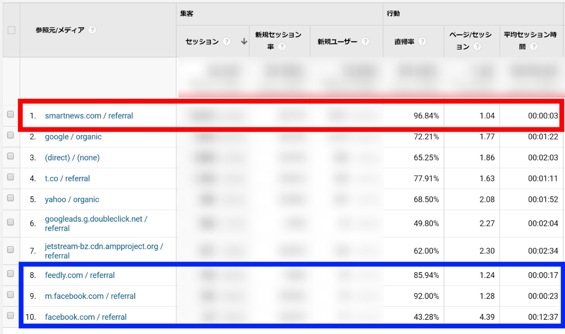 同じように数値の低い「Feedly」や「Facebook」は、あくまでも記事の抜粋を掲載している参照元となるので、ここが低いのは想定内。「SmartNews」のみほんと異常です。