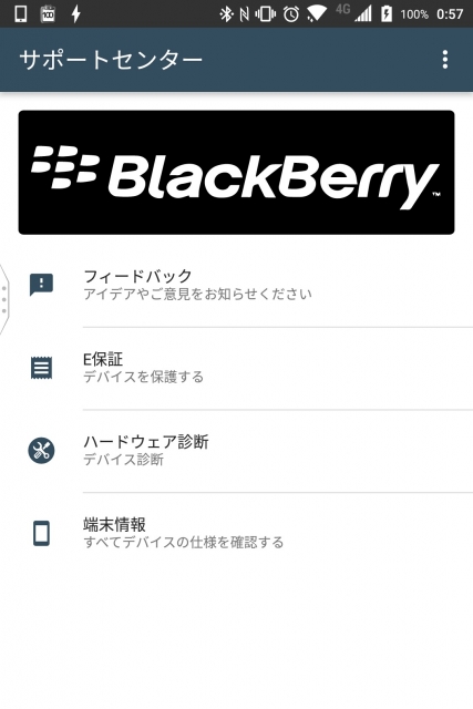 この「サポートセンター」アプリは「KEYone」に関するフィードバックの送信やハードウェア診断などを行うことができます。