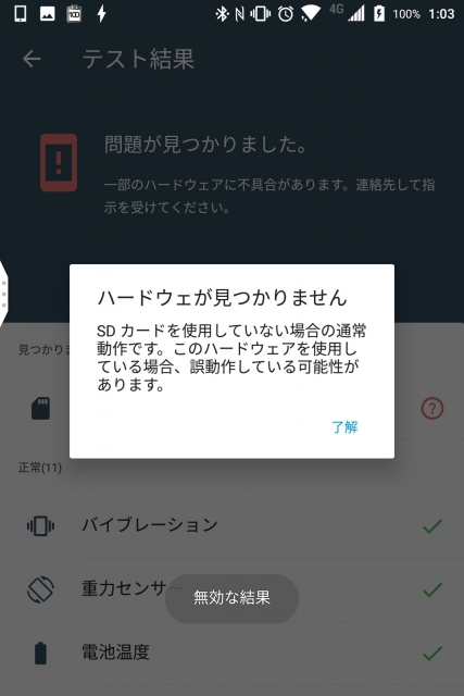 誤動作の可能性があると判定されてしまっています。内部ストレージ化している身からしてみれば、これこそ誤動作ですけどね。まぁわかっているのでいいですけど。