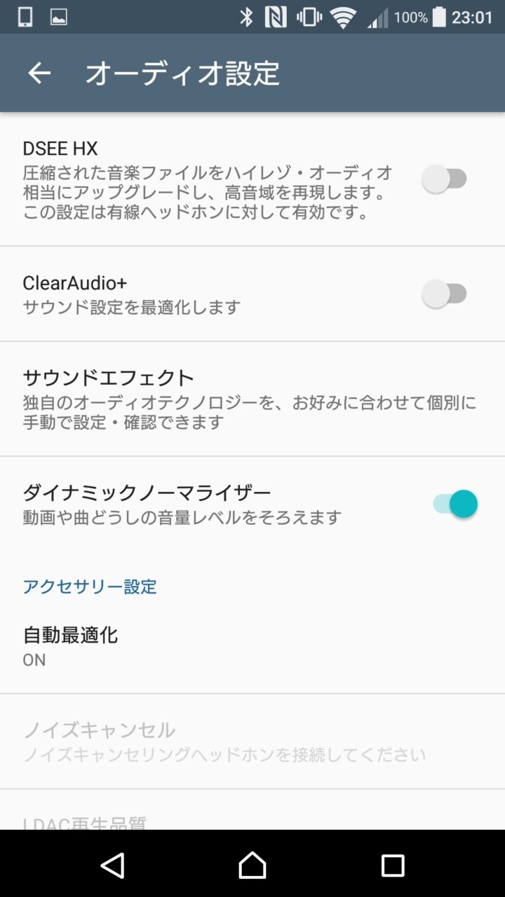 このほか Android の機種によってはイコライザー機能が拡張されていて、通常の機種よりも様々なオーディオ機能を使えたり、設定を行えるものもあります。※Xperia など