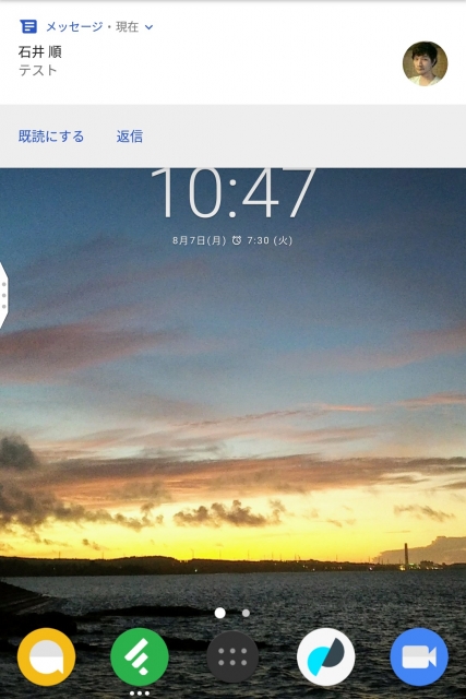 以前から「Android O」でも「Android メッセージ」を利用することはできていましたが、今回のアップデートで正式に「Android O」をサポートしました。次の追加機能は、SMS の通知を受信した際に表示されるポップアップ通知や、メッセージを開いていない際に表示される通知領域の通知からダイレクトに既読を行うことができるようになりました。