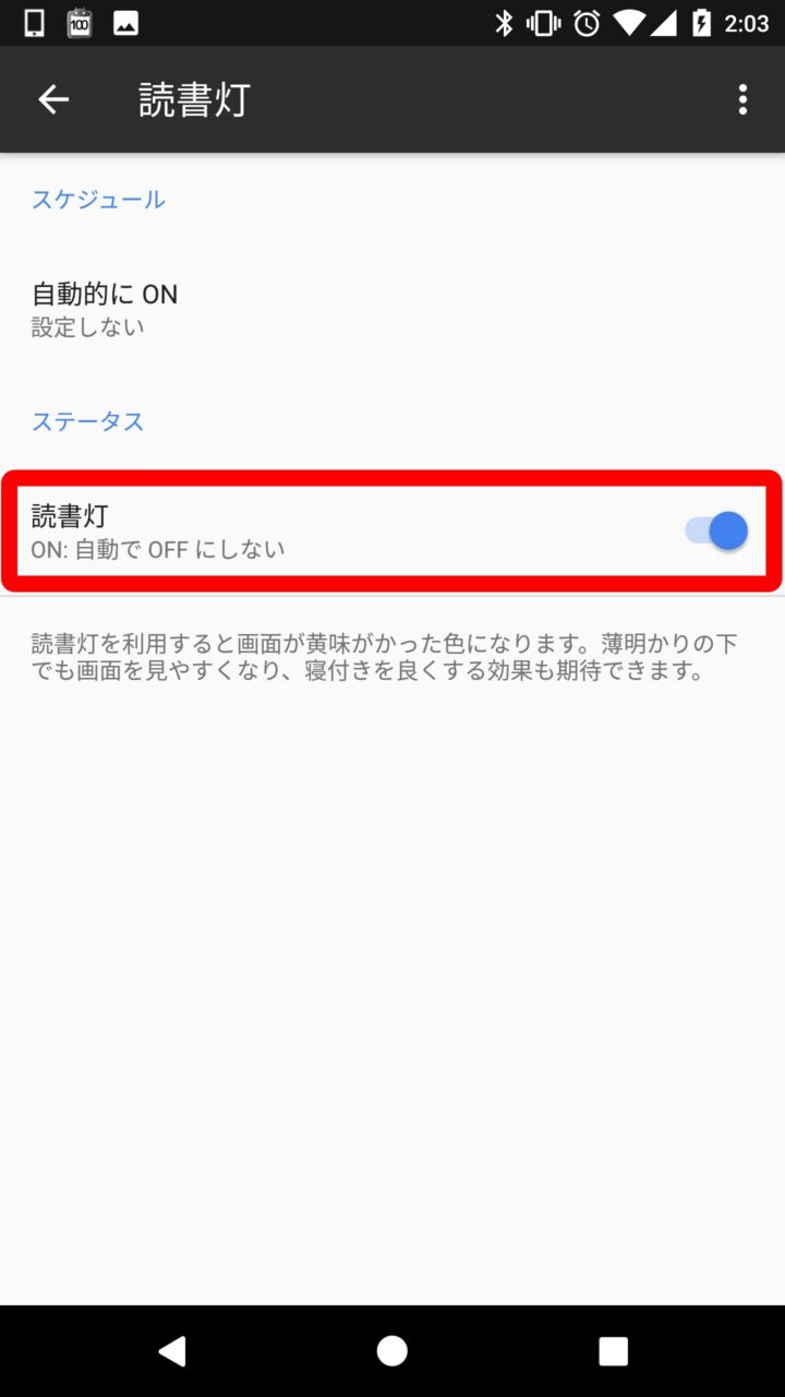 以上、Android 7.1 以降の一部機種で利用できる「読書灯」機能の解説でした。