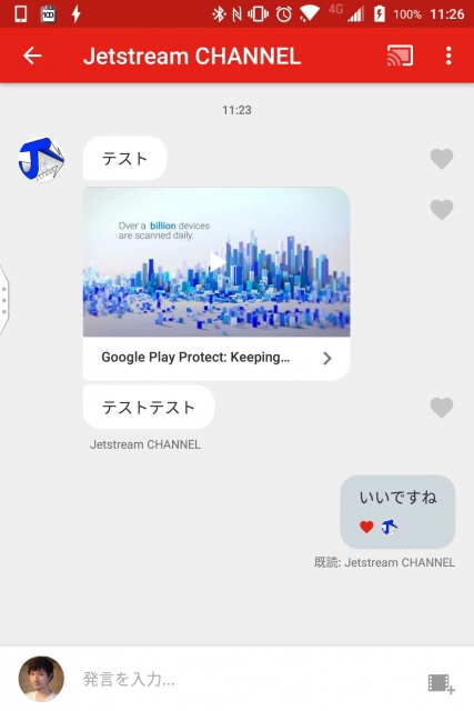 スマートフォン版「YouTube」アプリの “共有” 機能は、「YouTube」アプリ内で任意のユーザーとチャットを行うことができる新機能です。