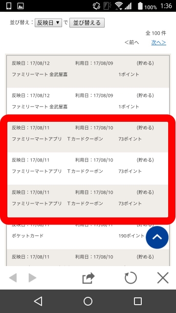 そして 2 日後に、ボーナスポイント(73pt × 3)が付与されました。