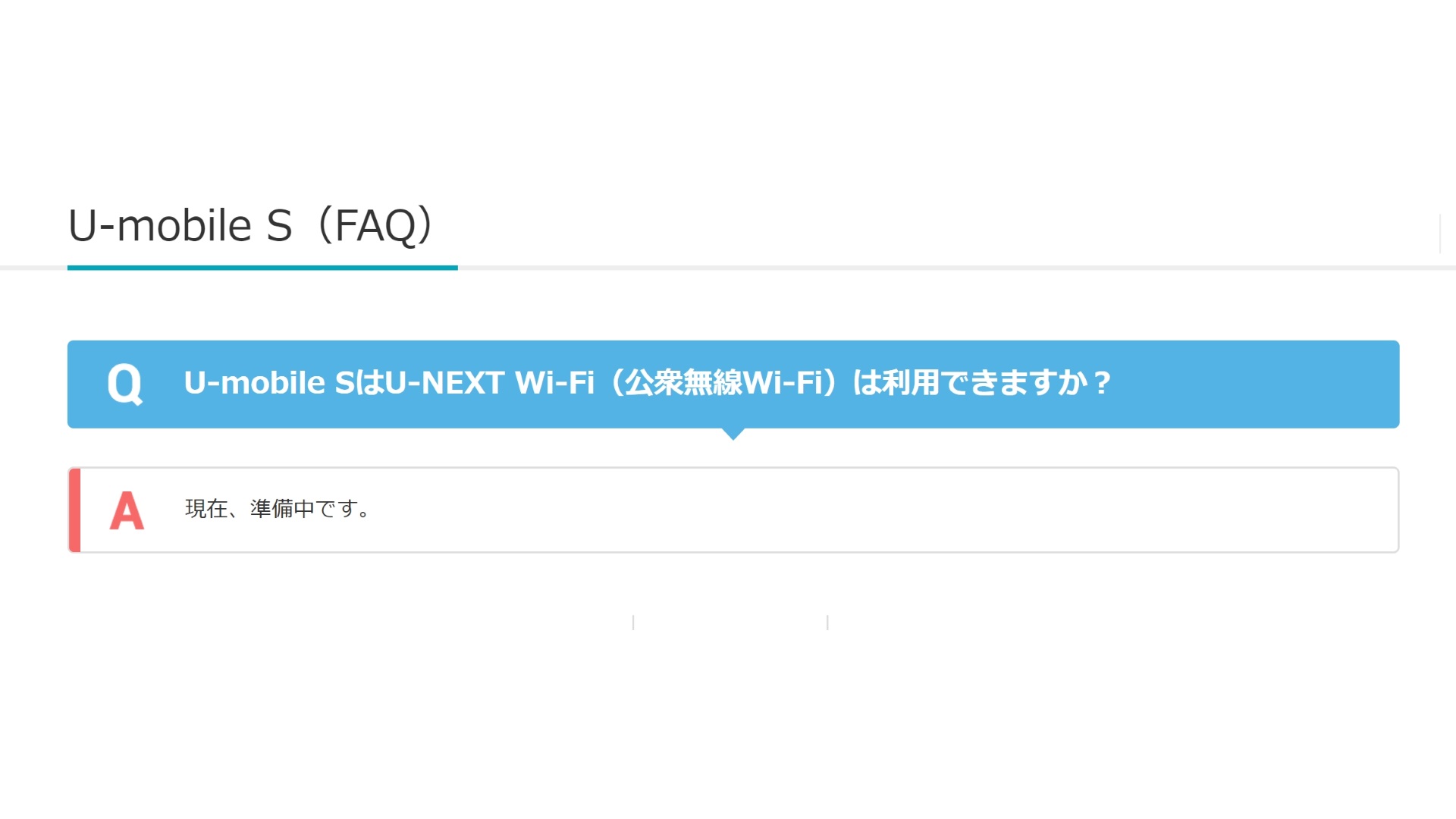 U-mobile S は U-NEXT が提供するサービスなので、「U-NEXT Wi-Fi」も当然のごとく利用可能かと思いきや、サポートページに “未” 対応の旨が記載されていました。理由は不明です。