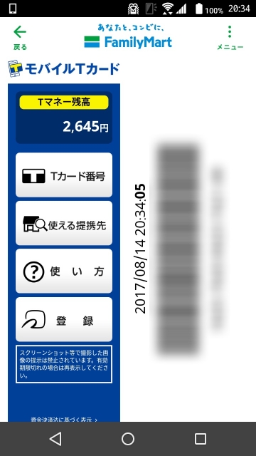 実際にファミリーマートに行ったのは 8 月 14 日だったので、この時点ではまだ「モバイル T カード」サービスは開始されていません。