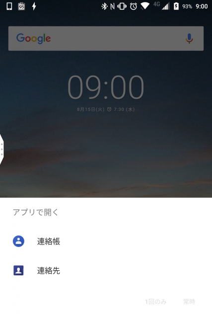 またこの時に “常時” を選択しておけば、以降連絡先アイコンをタッチした際は「連絡帳」がダイレクトに起動するようになります。