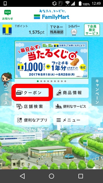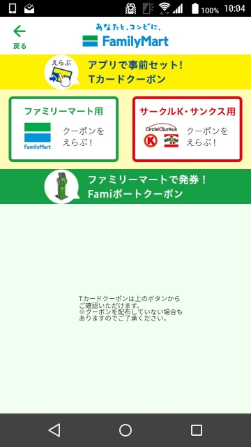 「T カードクーポン」は、スマートフォン用アプリ「ファミリーマートアプリ」内で配布されています。