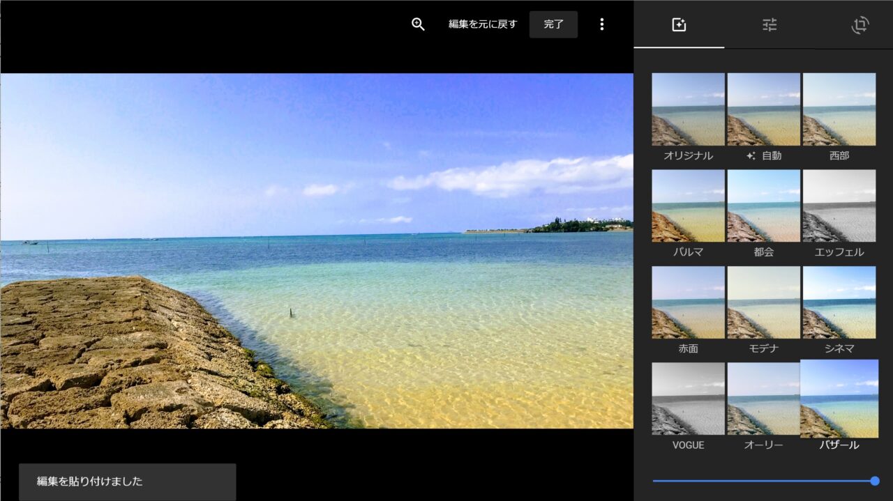 以上、デスクトップ版「Google フォト」で利用できる編集のコピーと貼り付け機能の解説でした。