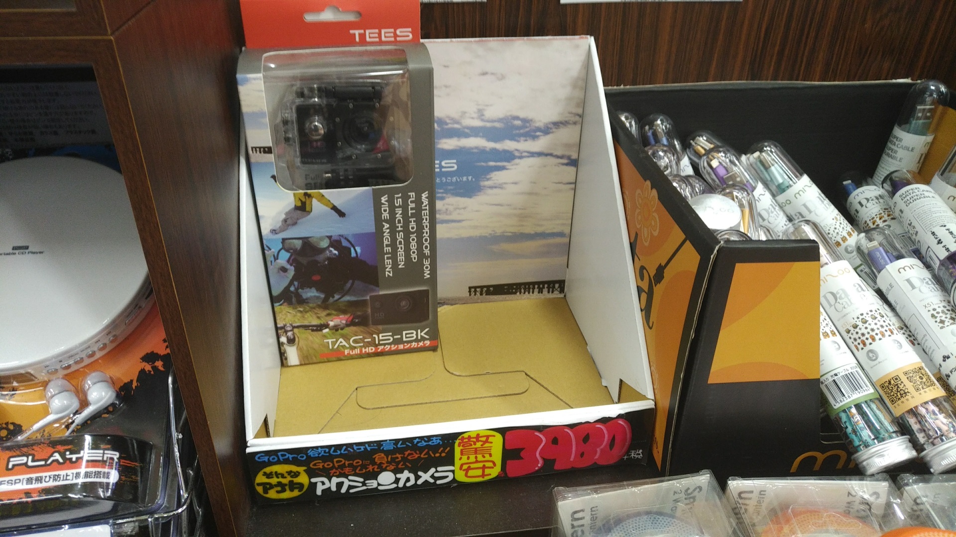 先日(8 月 17 日)、ドン・キホーテのプライベートブランド「ACTIVEGEAR(アクティブギア)」から小型アクションカム「アクティブギア フル HD カメラ(TAC-15S)」が発売されるとのことで、沖縄県うるま市にある MEGA ドン・キホーテ うるま店に行ってきました。今回は、その「アクティブギア フル HD カメラ」に関する変な話です。