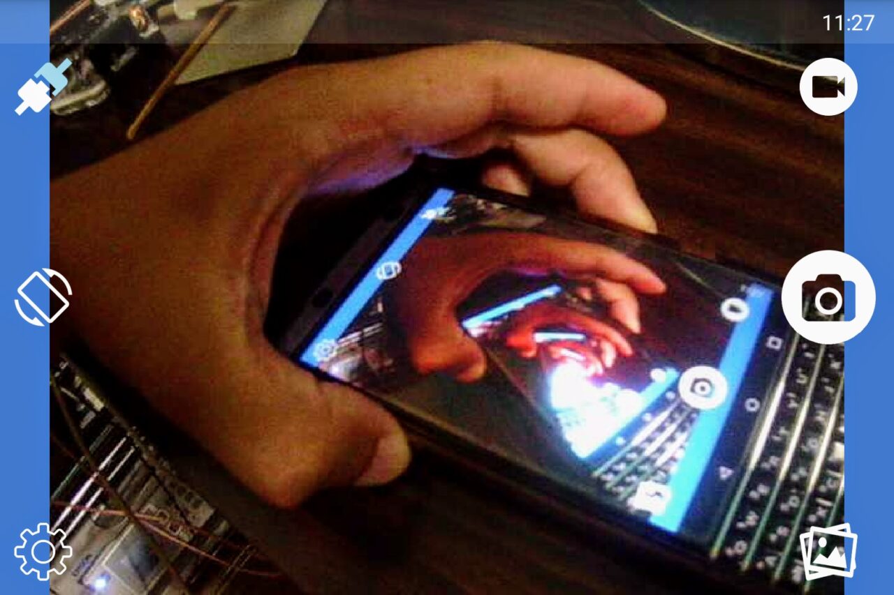 すると、「KEYone」のディスプレイに「アクティブギア フル HD カメラ」のカメラ画面が表示されるようになります。この状態で「KEYone」側で静止画撮影や動画の撮影を遠隔操作することができます。素晴らしい。
