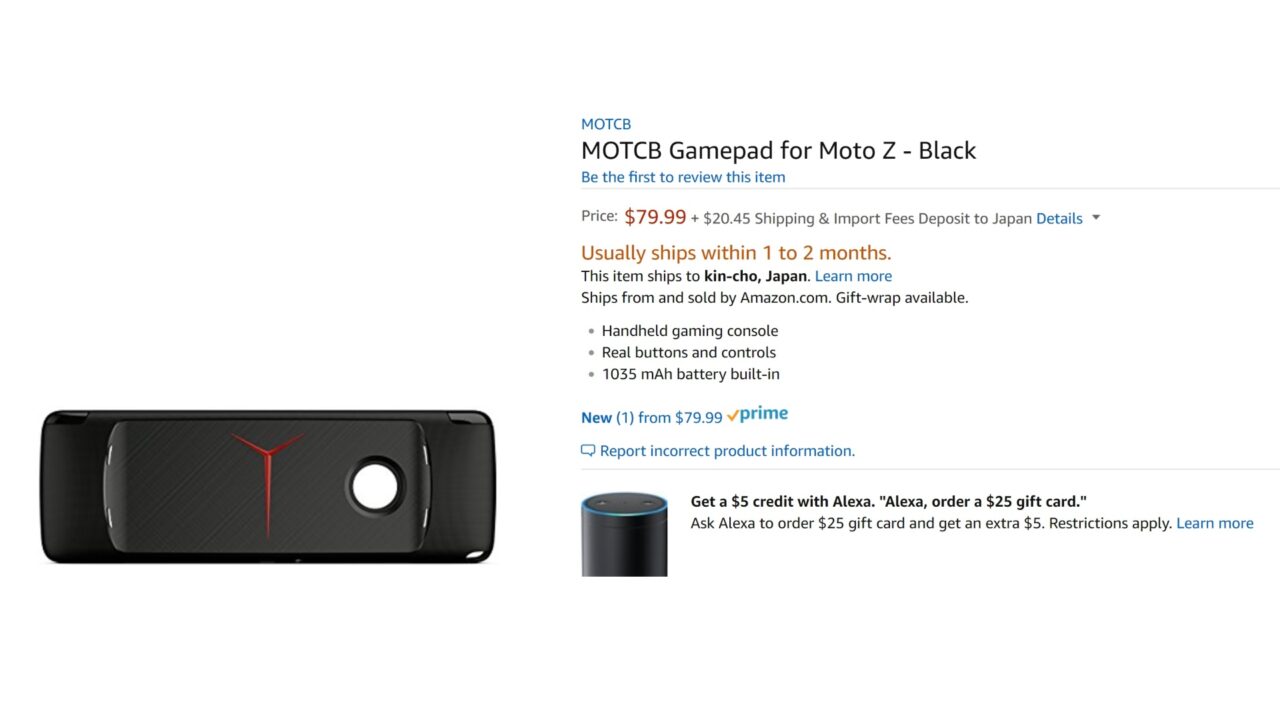 「Moto Gamepad Moto Mod」は Amazon において、本体価格 $79.99 となっています。