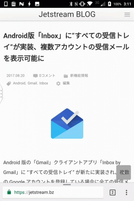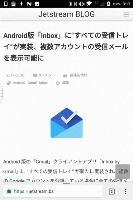 アドレスバーが下に移動したので若干違和感はありますが、これはこれで慣れれば使いやすくなるかと思いました。特に「BlackBerry KEYone」の場合、片手でアドレスバーをタッチしてそのまま物理キーボードで検索ワードを入力したりするなど、これまでよりもサクサク操作ができる可能性があります。