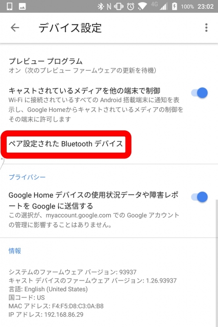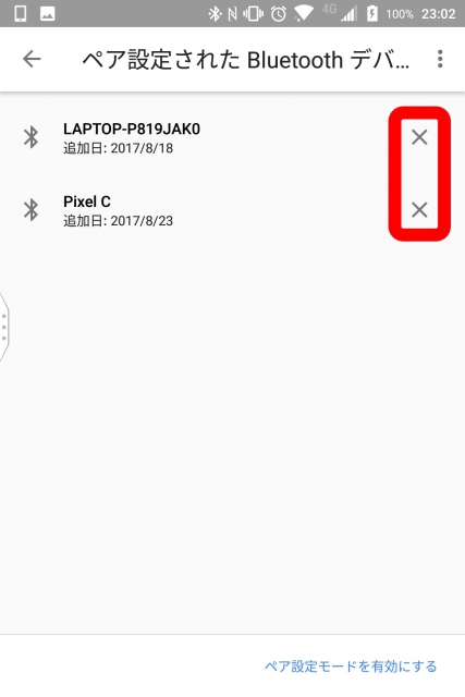 ペアリングを解除する方法は「Google Home」アプリの“ペア設定された Bluetooth デバイス” から、ペアリングを解除するデバイス右横の “×” アイコンをタッチするだけです。