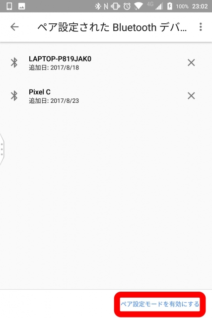 すると “ペア設定モード” となるので、この状態でペアリングするスマートフォンなどの Bluetooth 設定を開き、あとは通常通りペアリングを行います。