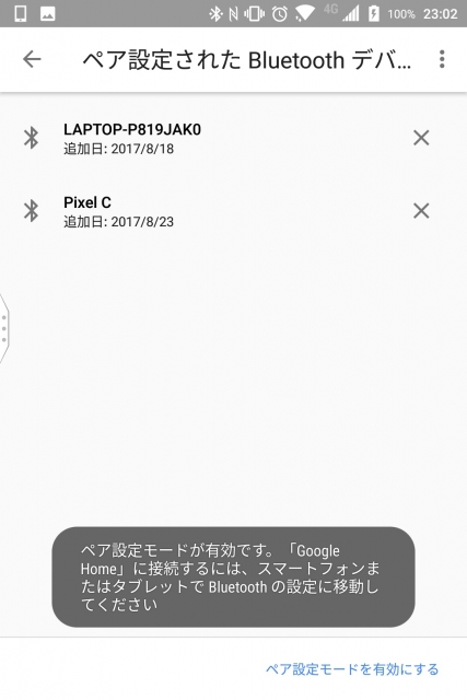 「Google Home」は“ペア設定モード” を有効にしないと Bluetooth のペアリングができないのですが、私はこれを気づかずにかなり試行錯誤してしまました。