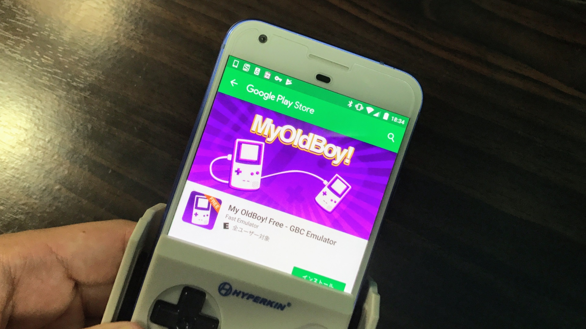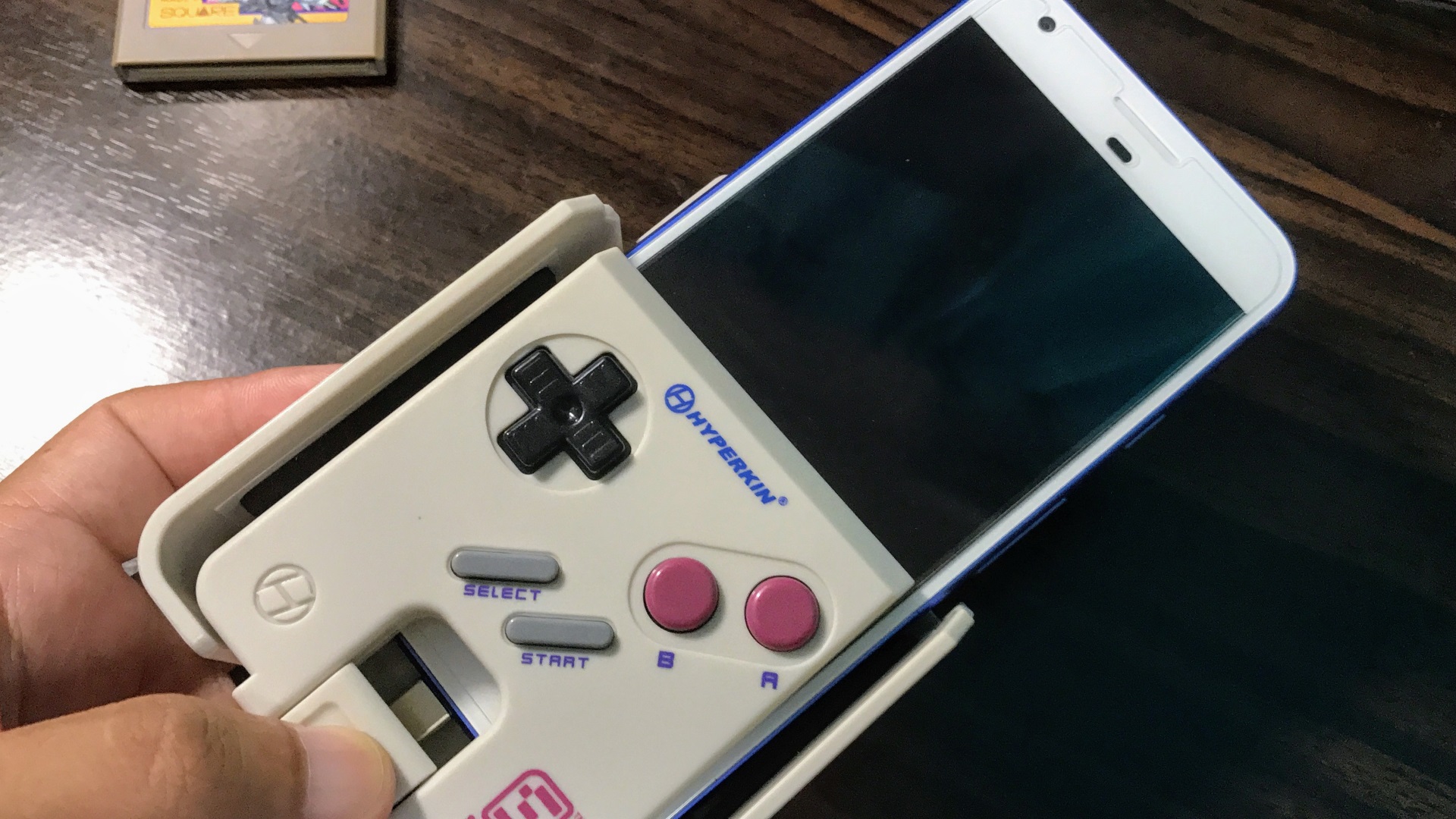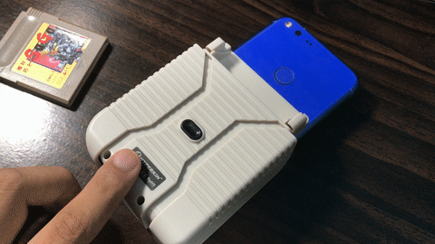 実際の遊び方は、まず Google Play ストアから「SmartBoy」アプリをインストールしておいて、そして「SmartBoy」に Android を挿します。今回は「Pixel XL」を挿してみました。