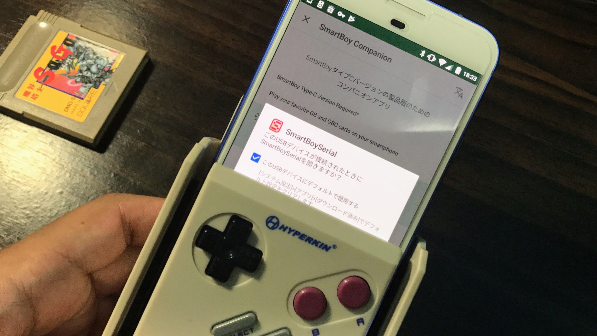 「SmartBoy」アプリが起動するので、この状態でゲームカートリッジを挿します。(事前に挿していても多分問題ありません)