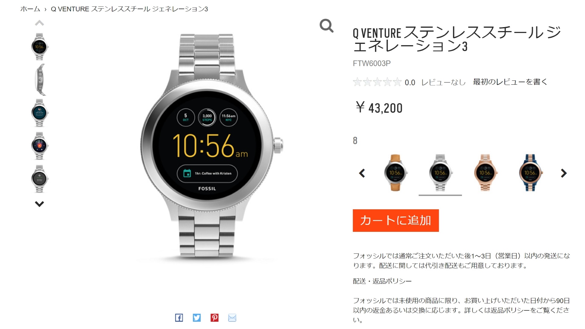 現在国内の Fossil 公式サイトでは「Fossil Q Explorist」が 4 モデル、「Fossil Q Venture」が 1 モデル入荷しています。価格は 38,880 / 43,200 円となる模様。
