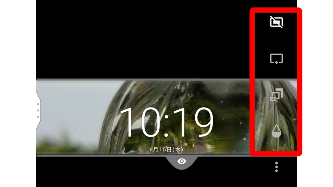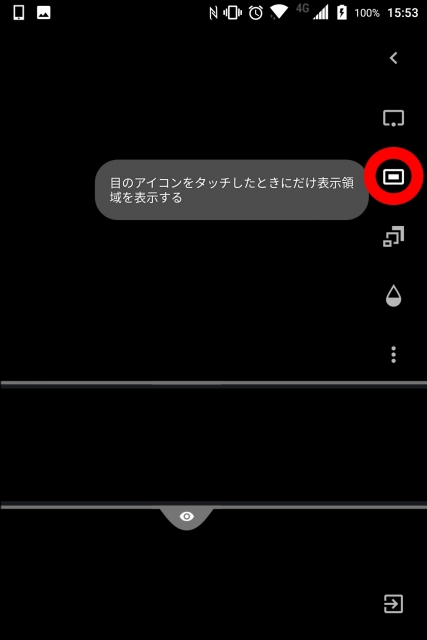 これまではこのアイコンをタッチすると「Privacy Shade」アプリ使用中でも表示領域まで全て黒く塗りつぶされる設定なっていたのですが、今回このアイコンをタッチして ON の状態にすることで、 “👁” アイコンタッチ中のみ「Privacy Shade」の表示領域が表示されるようになります。