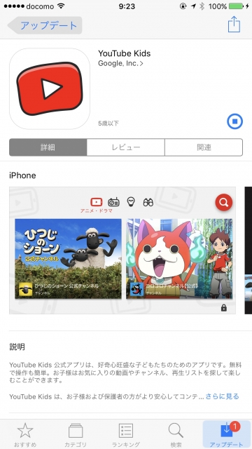 ちなみに日本向けの「YouTube Kids」はメニュー表記などが日本語になている以外は特に海外との違いはありません。