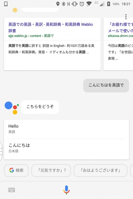 「Google アシスタント」の場合は、実際に発音までしてくれるので親切。