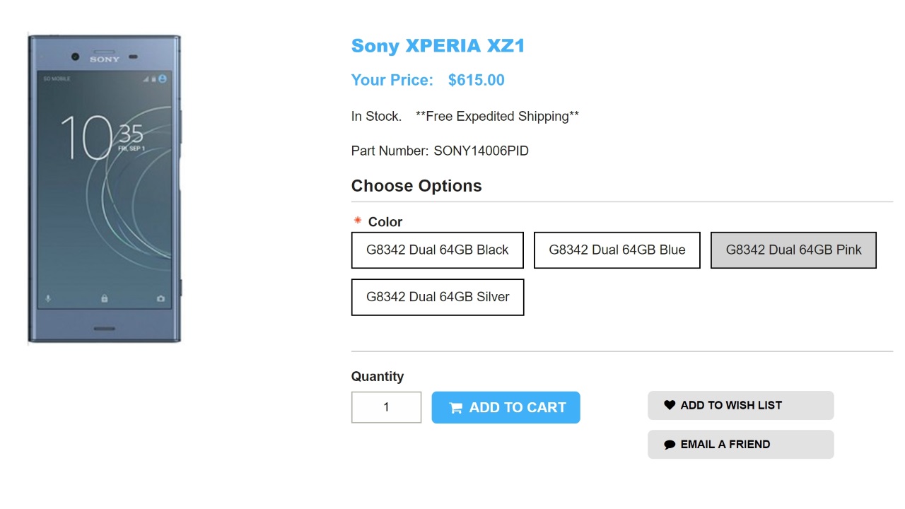 日本直送と日本語に対応している香港のガジェットショップ 1ShopMobile に、IFA 2017 で Sony Mobile から発表された新フラッグシップスマートフォン「Xperia XZ1」が入荷した模様です。現在、“ムーンリットブルー” “ブラック” “ウォームシルバー” “ヴィーナスピンク” の 4 色が、送料込み本体価格 $615 で販売されています。意外と安価です。