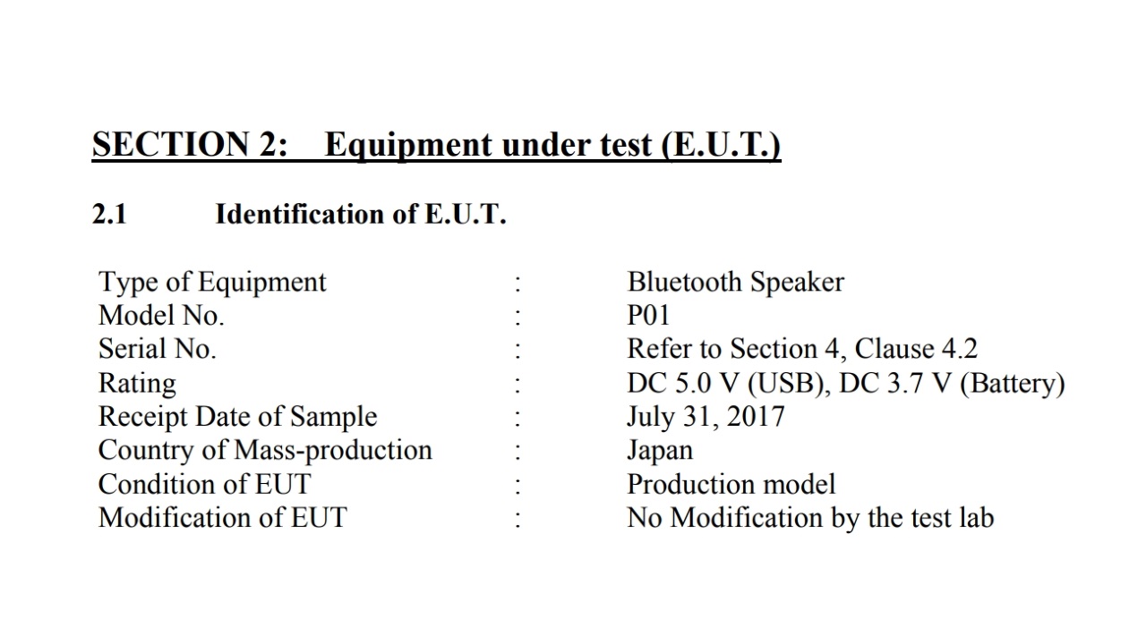 VAIO が開発していると見られる Bluetooth スピーカー「P01」が、2017 年 9 月 15 日付けで FCC の認証を取得しました。FCC ID は「2AL4MP01」です。
