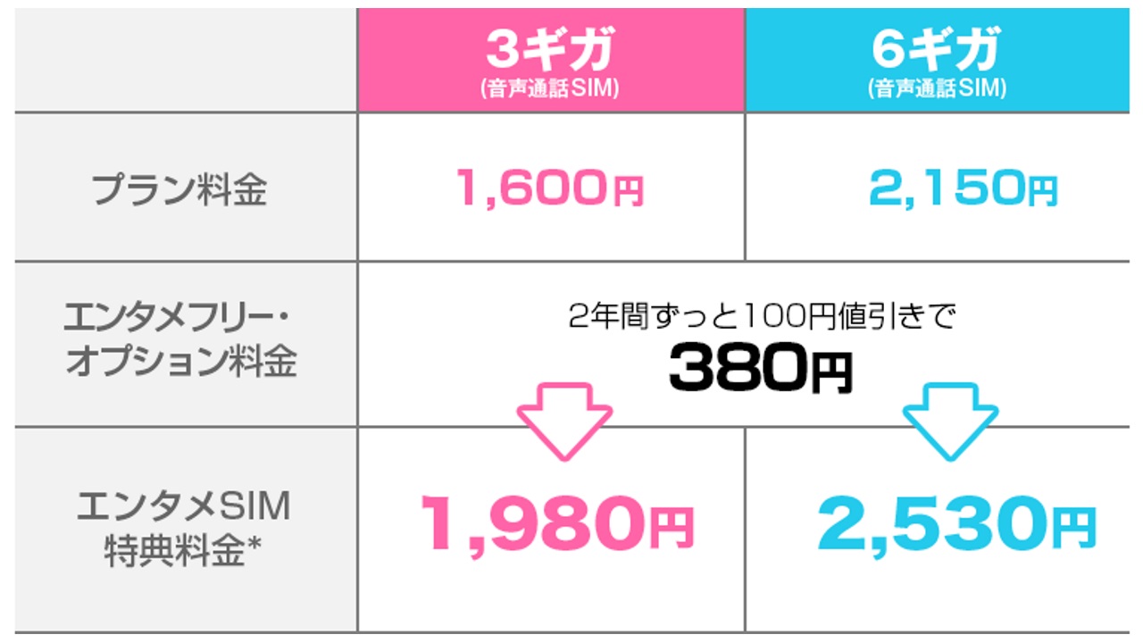「エンタメ SIM」は、音声通話 SIM でのみ提供される新たなサービスです。